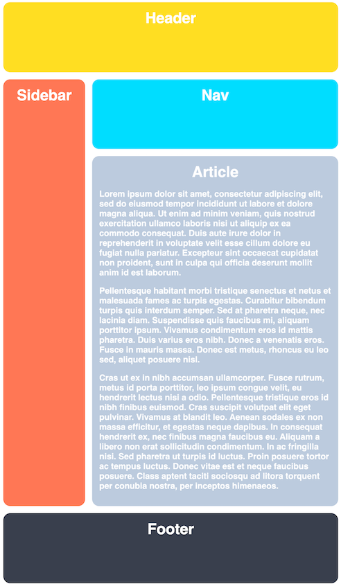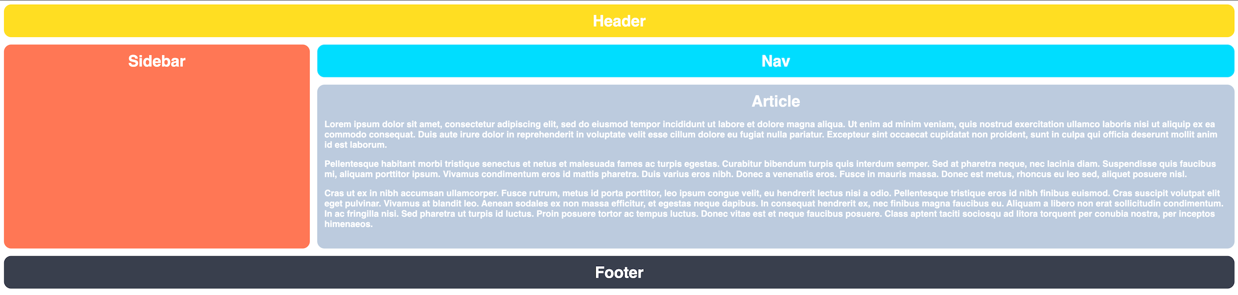 This one is easy! We are going to take our Holy Grail Layout from the first exercise and make it responsive. To do this we will simply change our fixed track sizes to be dynamic. Consider this a warmup for the next exercise and make sure your layout is responding properly when resizing the browser window.