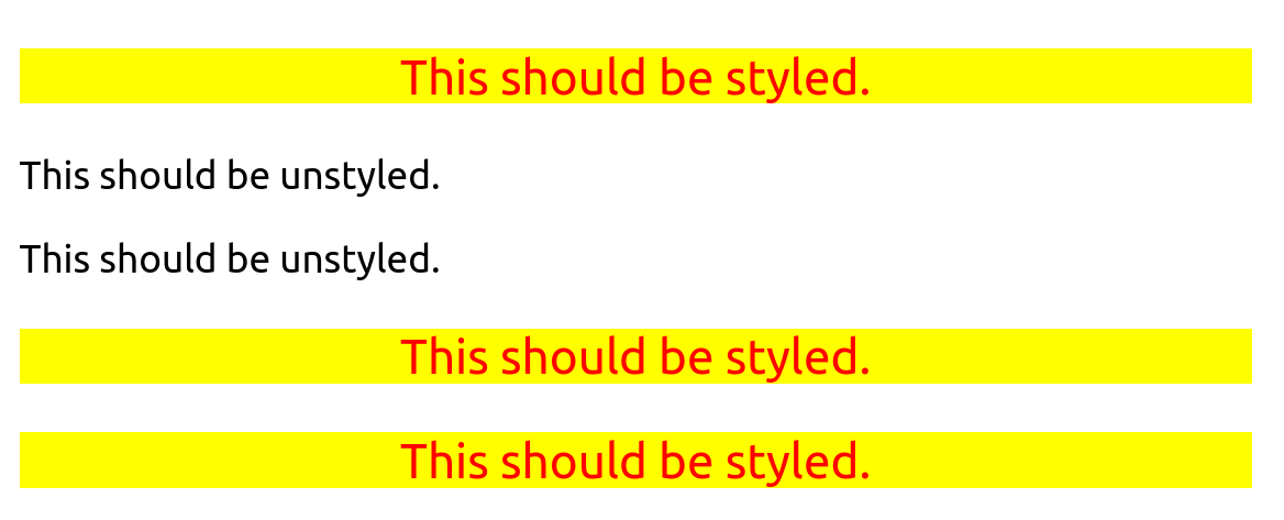 • Do the elements that contain the text "This should be styled" have the correct styles applied?